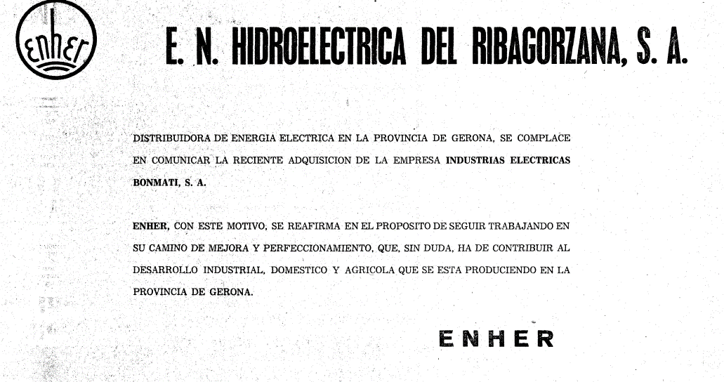 Se ha concedido a don José M.ª Bonmatí la debida autorización para establecer un ramal de transporte y distribución de energía eléctrica sobre el puente del río Ter en la carretera de Riudellots a San Martín de Llémana, la estación de Bonmatí del ferrocarril de Olot a Gerona y un grupo de casas existentes al lado izquierdo de la carretera de Gerona a Anglés.